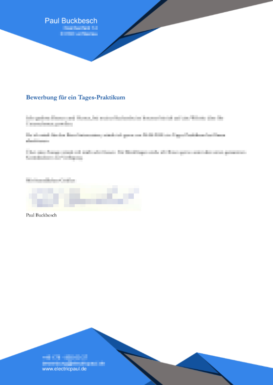 Ein Anschreiben darf bei den meisten Bewerbungsformularen laut meinem Vater nicht fehlen, daher habe ich einfach die Lebenslaufvorlage erneut genutzt und etwas angepasst. Hier seht ihr mal meine Wordvorlage, die ich für meine Bewerbungen genommen habe.
